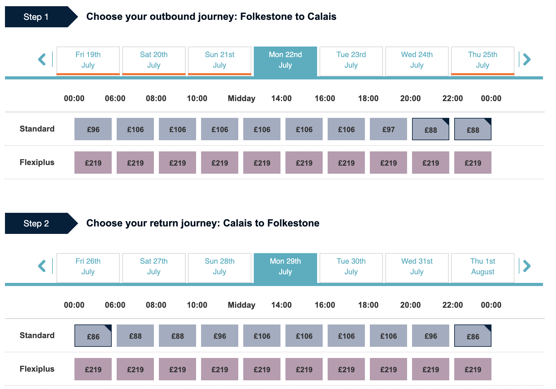 As is often the case with most forms of travel, it is cheaper if you book in advance but given that prices start at £85 each way for staying a week, I quickly found options for very close to that in July.