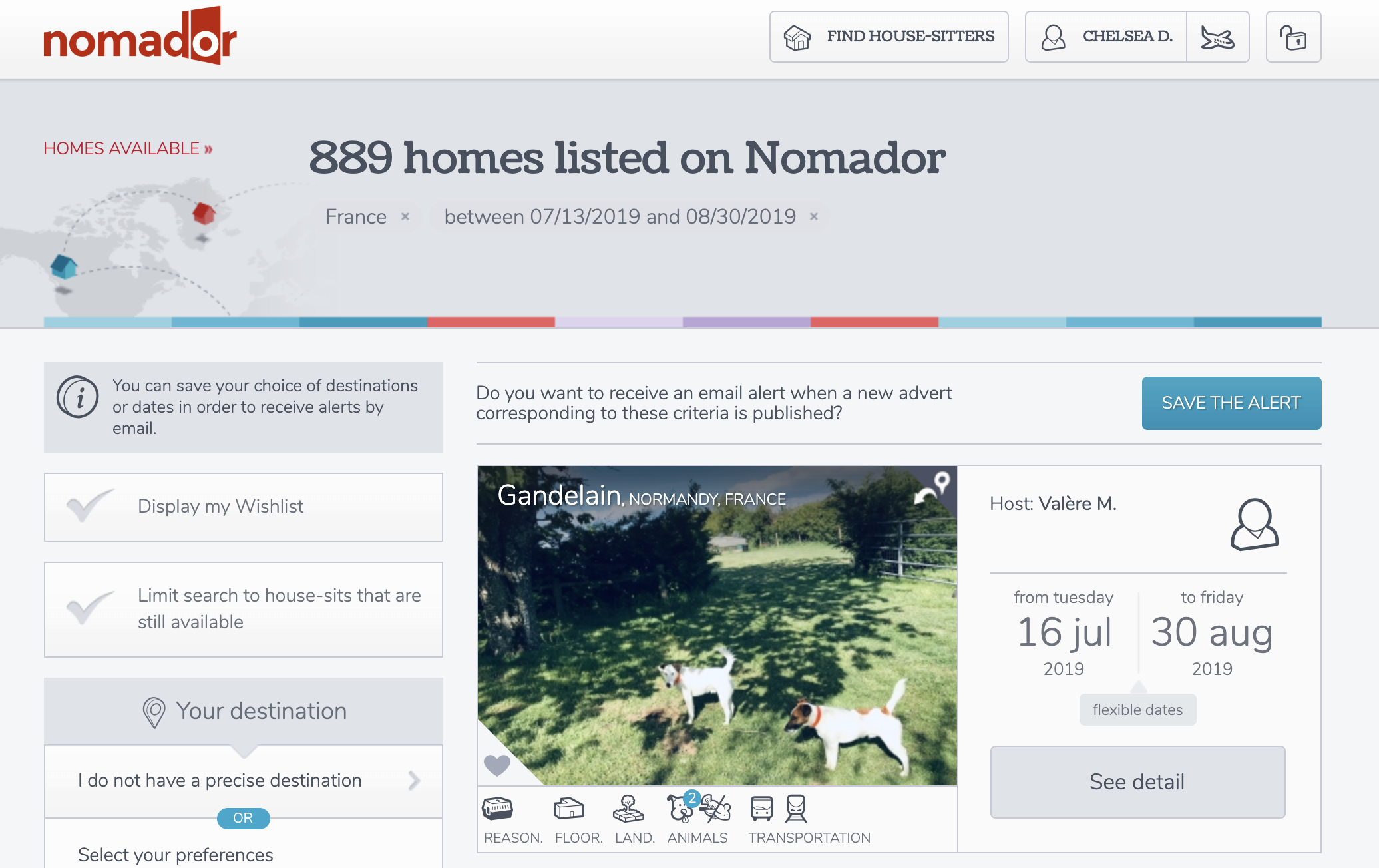 There are lots of different house sitting websites – Trusted Housesitters, Mind My House and House Carers – but I like Nomador because it has a totally free option that lets you send three messages to owners out for absolutely nothing.