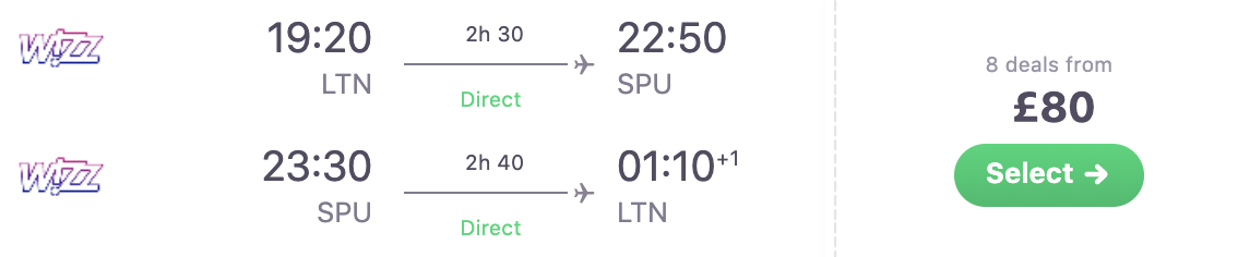 London, with its wide array of airports, has more cheap options than other UK locations but I’ve gone with this flight to Split in Croatia.