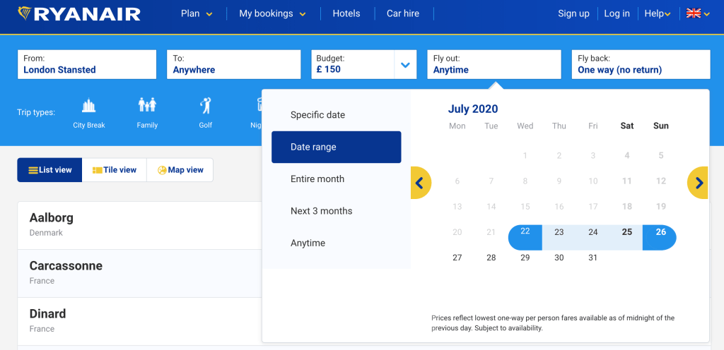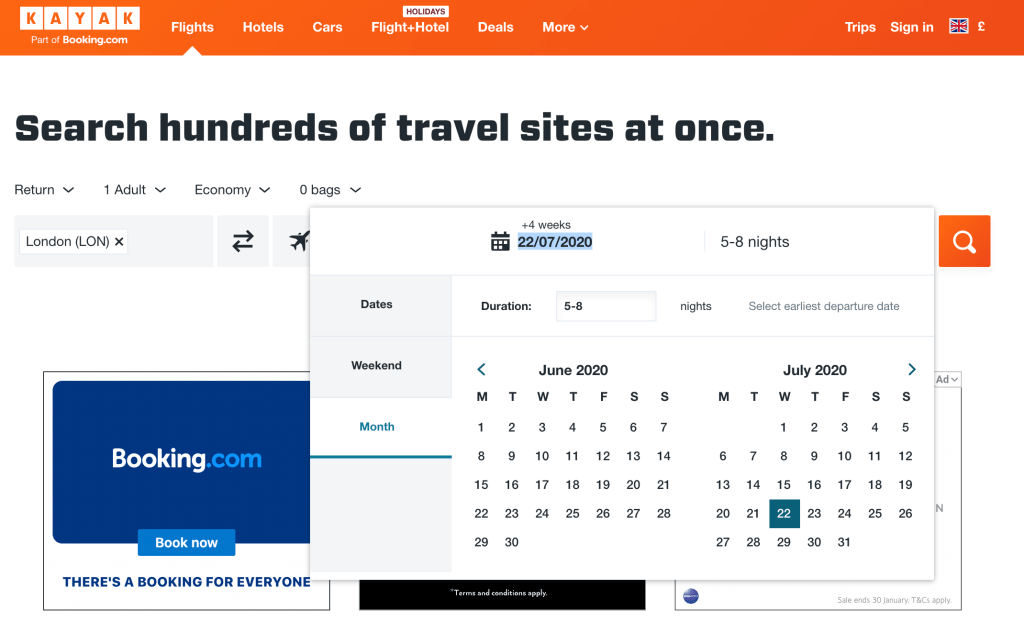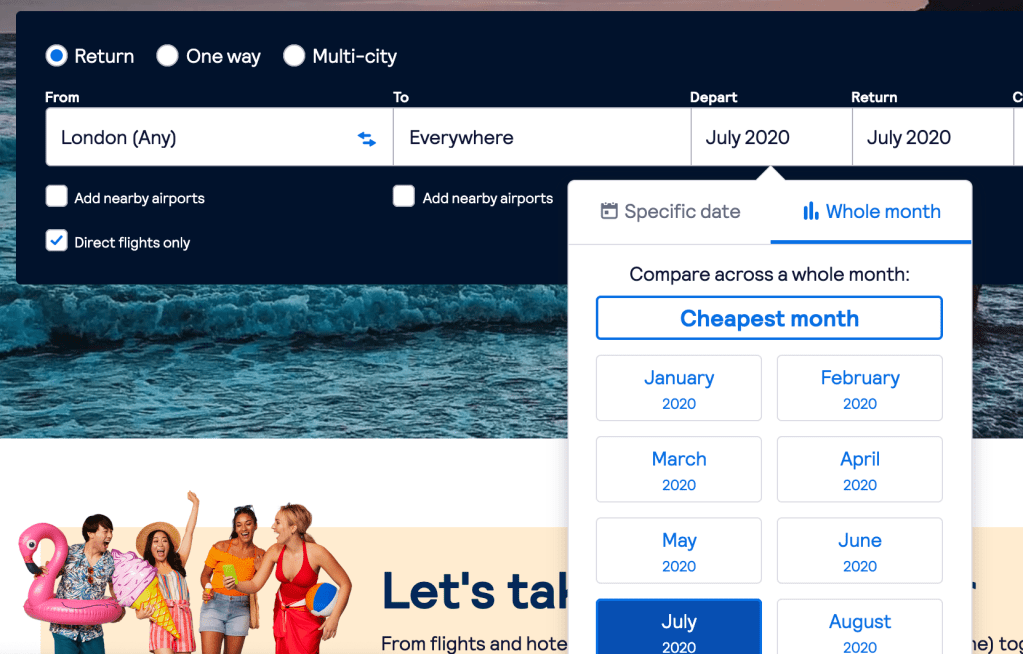 Other search engines have great tools but a lot of them clump your searches into month blocks. This can be really helpful for August, but not in July when you only want to search for school holiday dates and the cheapest prices will obviously be those outside of that.