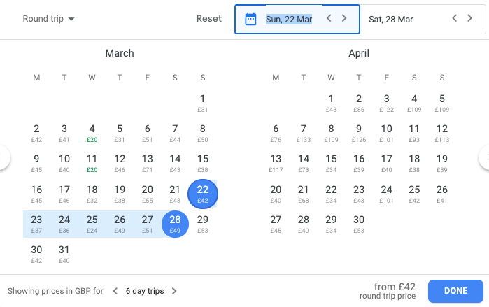 Google Flights also have a clever search tool that allows you to search for weekends, weeks and two week return flights in a certain month (though annoyingly we’re note quite at the summer holidays yet!).