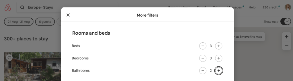 I’ll then enter my dates (24th Aug – 31st Aug) and the amount of guests I’m after (6).