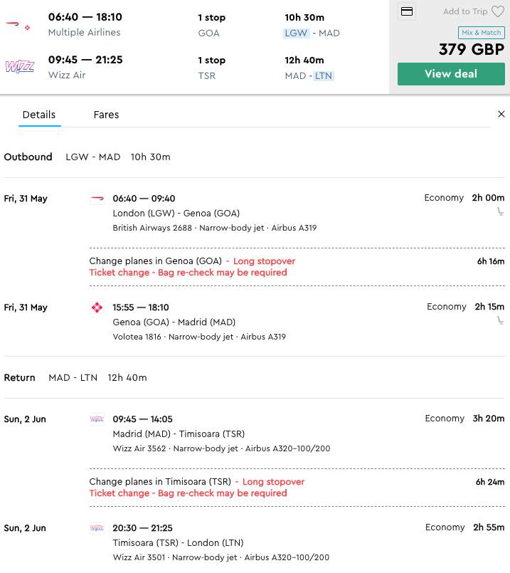 However, as it’s flying from and returning to different airports AND I have a way to save more money on Wizz Air, I’m going to stick with what I found on Google Flights and click through to book direct with the airline.