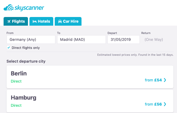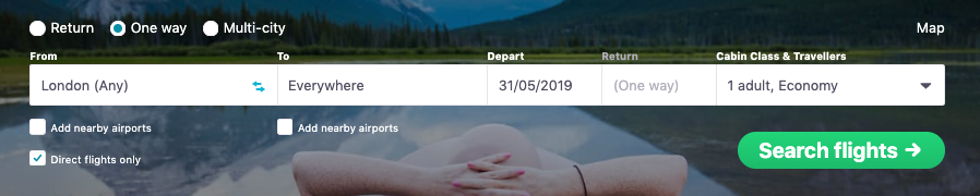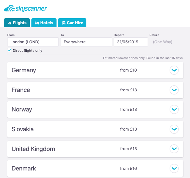 Before clicking through, always check your flights on Skyscanner as it can often find cheaper prices as it searches more third party companies.