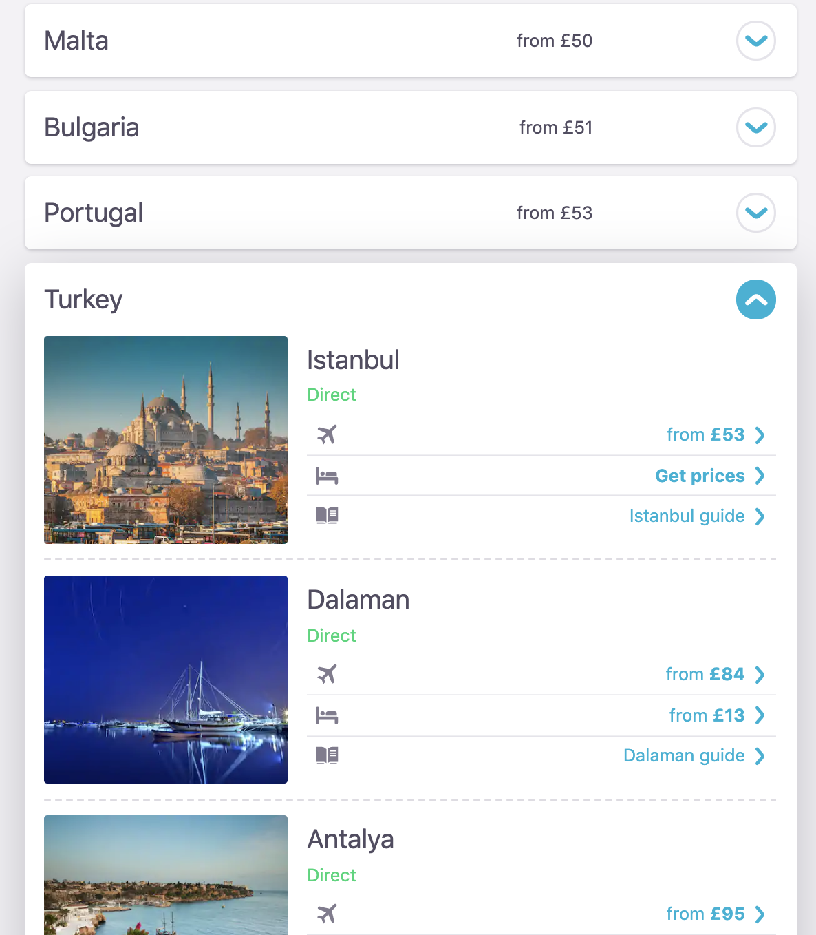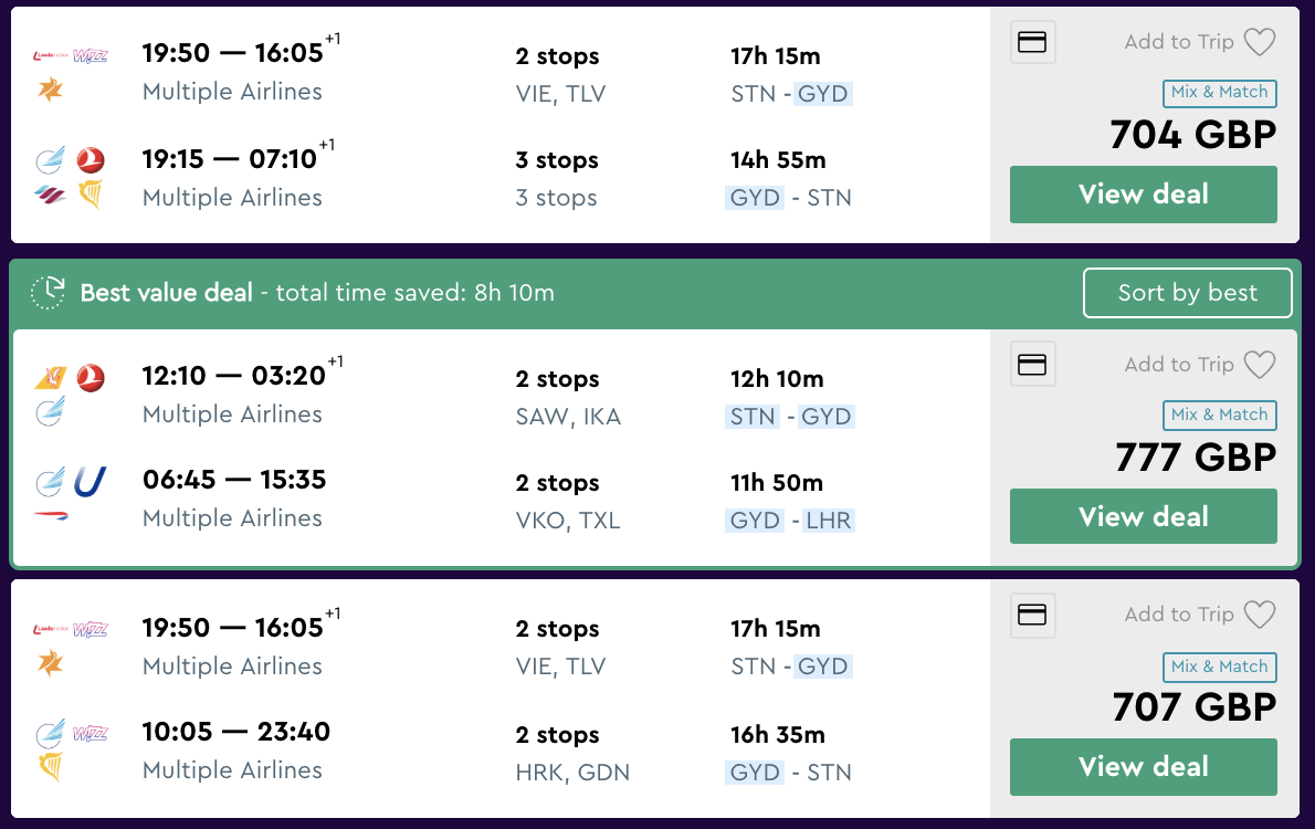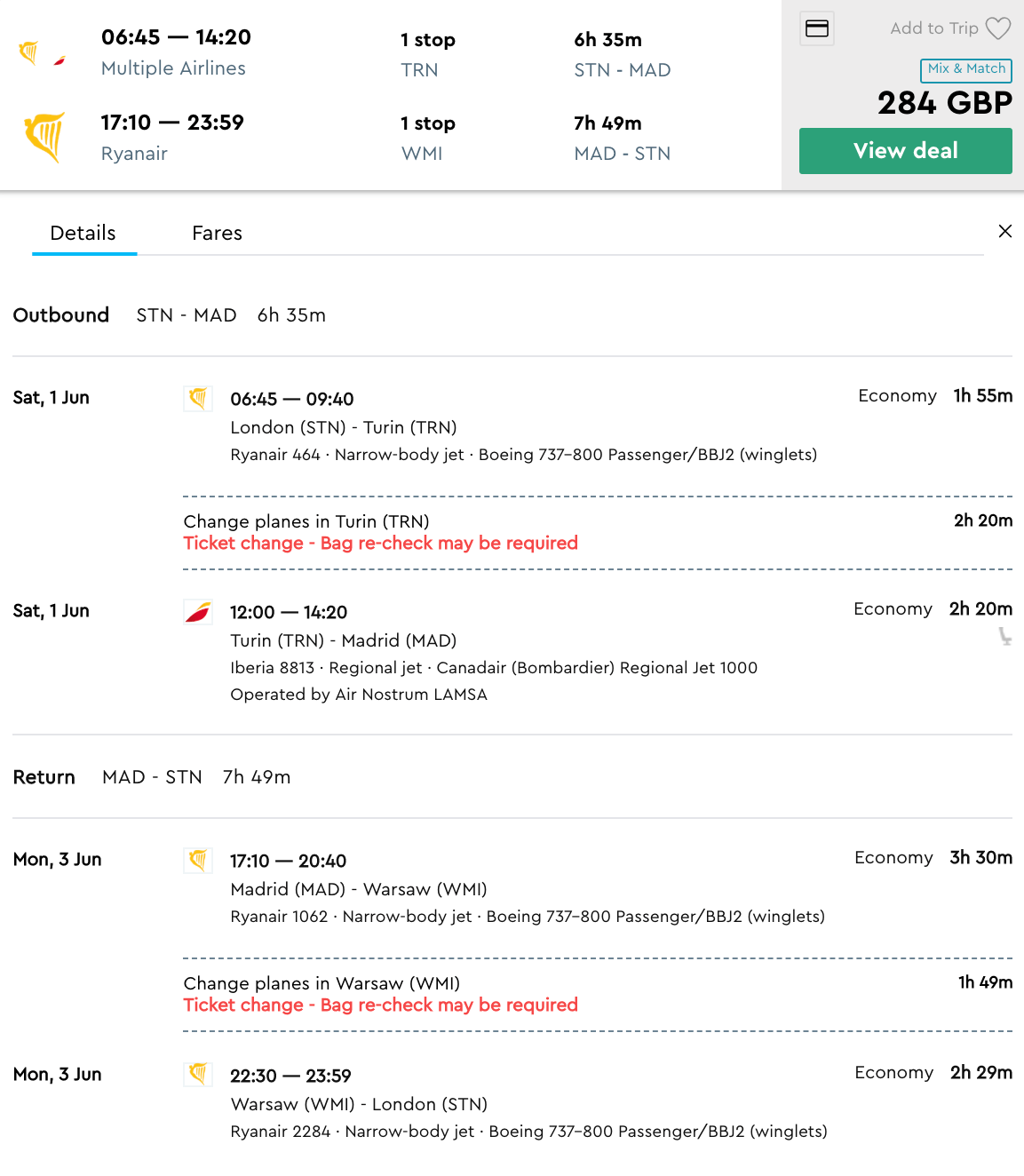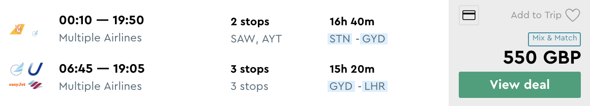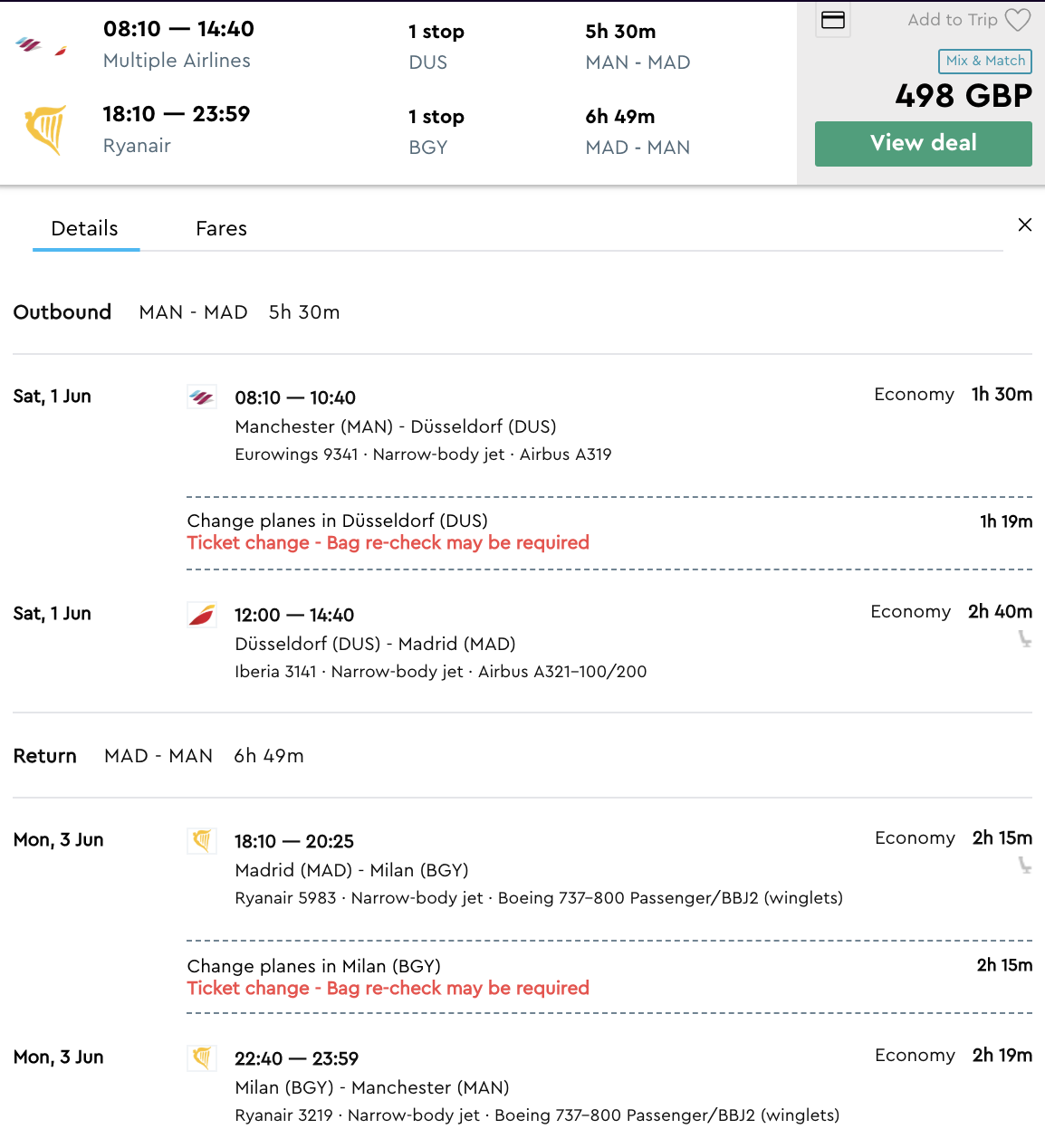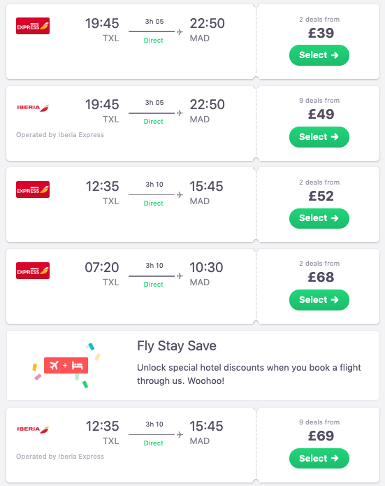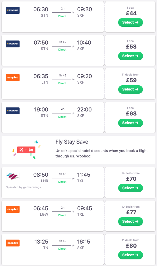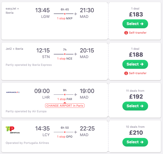 The flights are showing up the same price but hilariously, Skyscanner are throwing in an even cheaper option with Ryanair for £43 return.