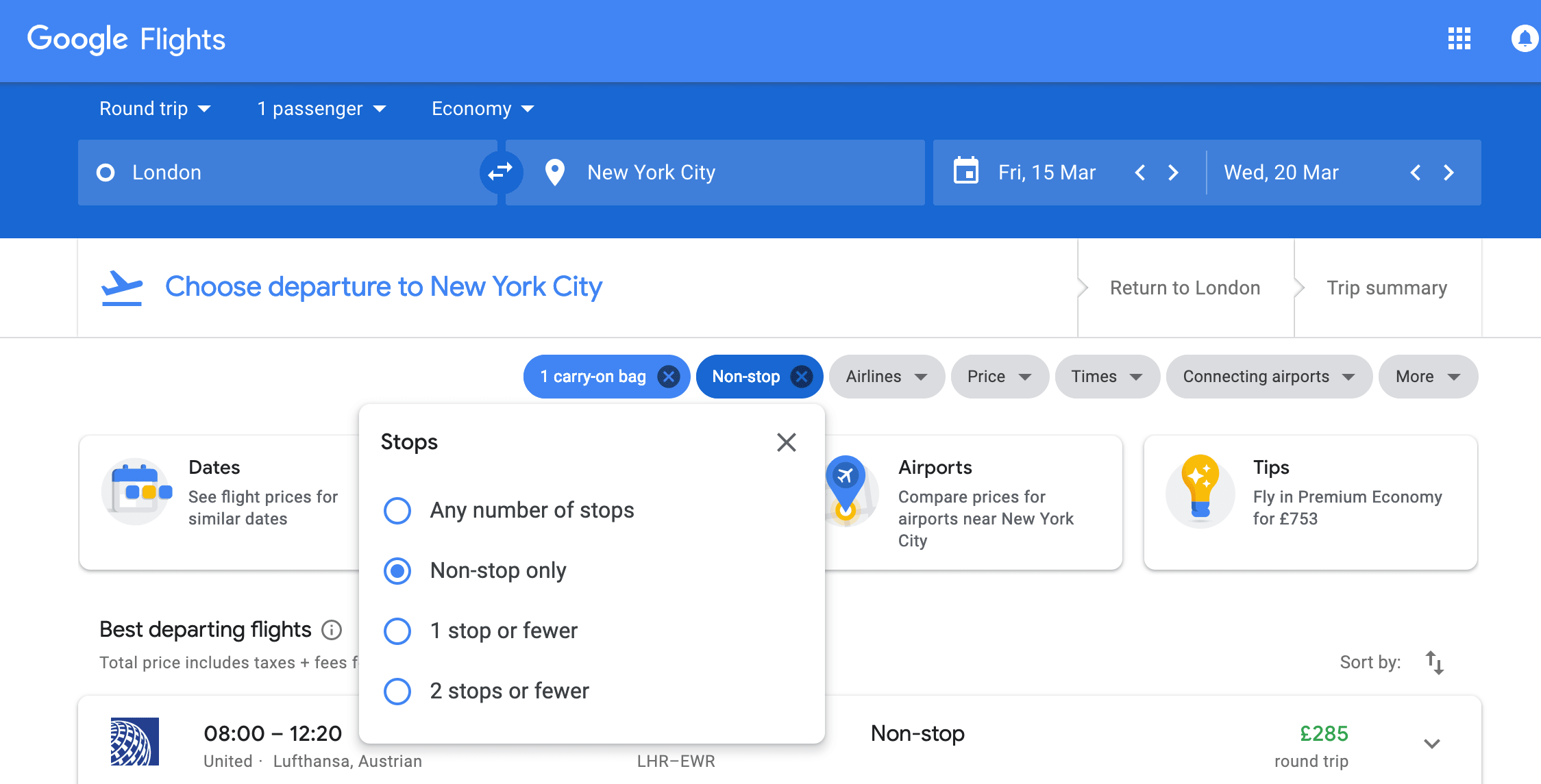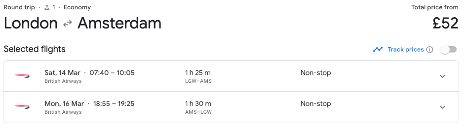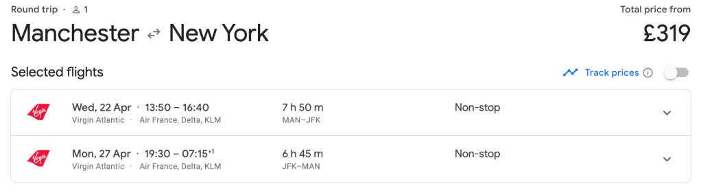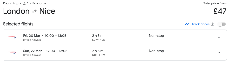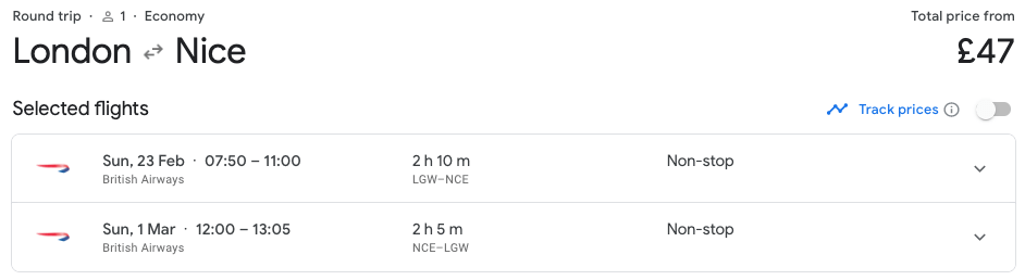 Do not worry if Google Flights aren’t showing the same cheap price – this is normal, as you tend to get the best prices by checking with other websites
