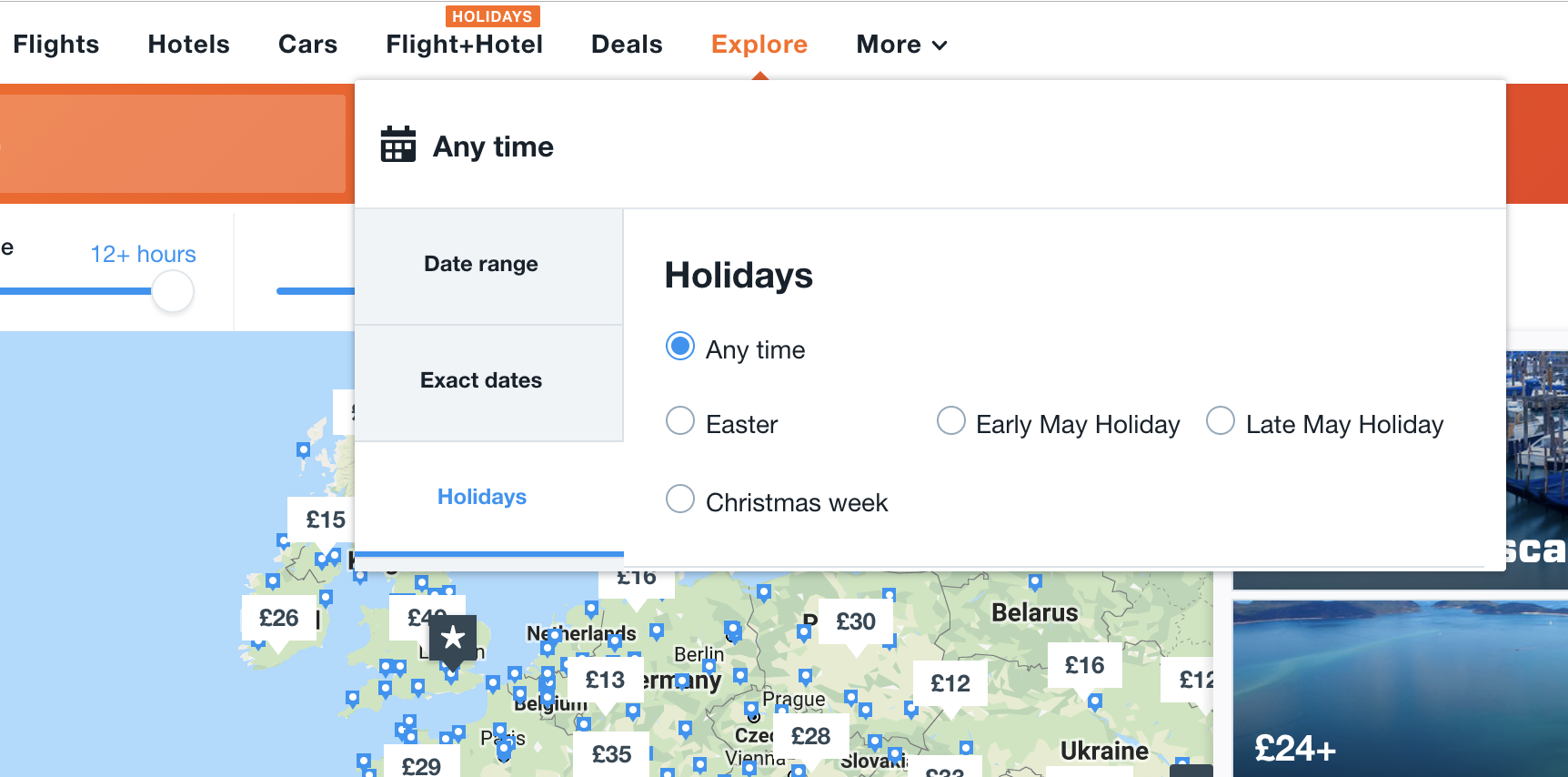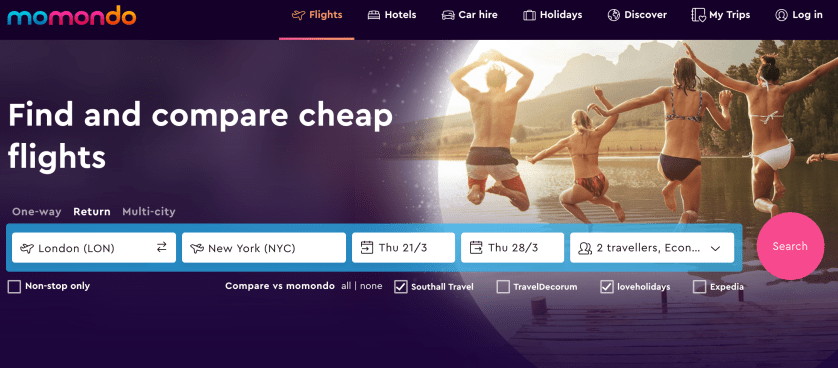 There’s flights, hotels, package deals and even bus and train fares on here!