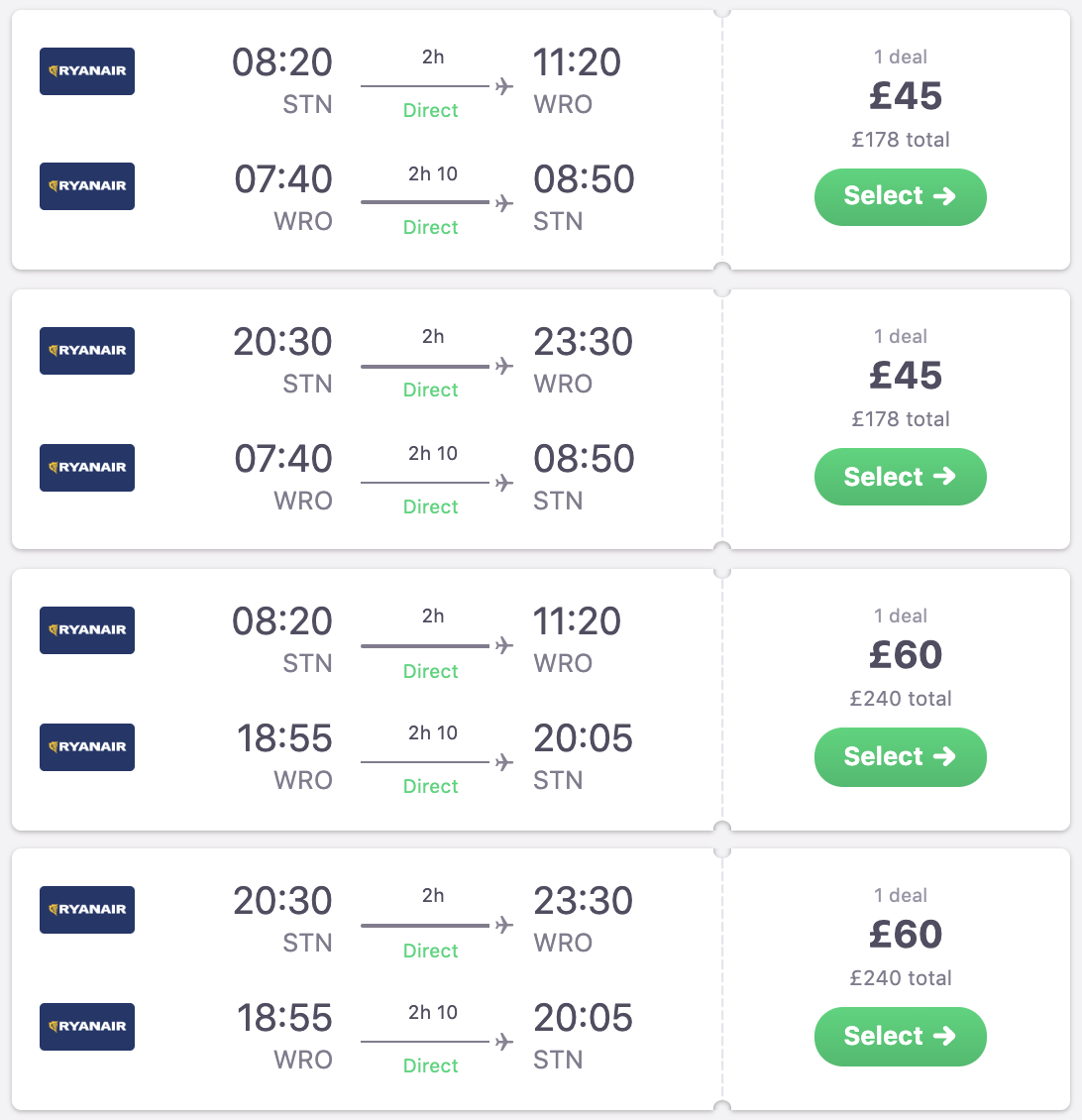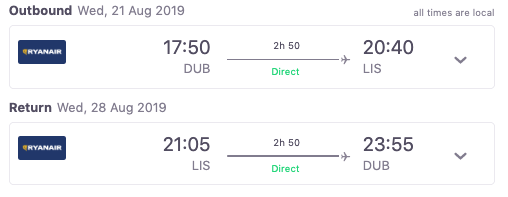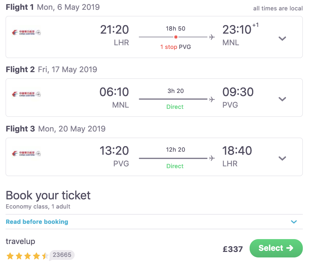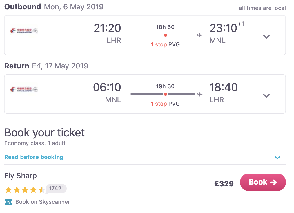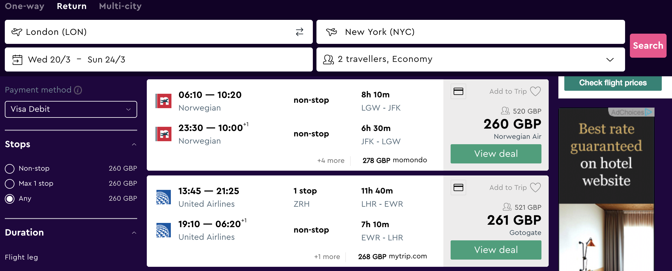 Then, whack those newly found dates into Skyscanner and momondo and hopefully they’ll also show the same bargainous price!