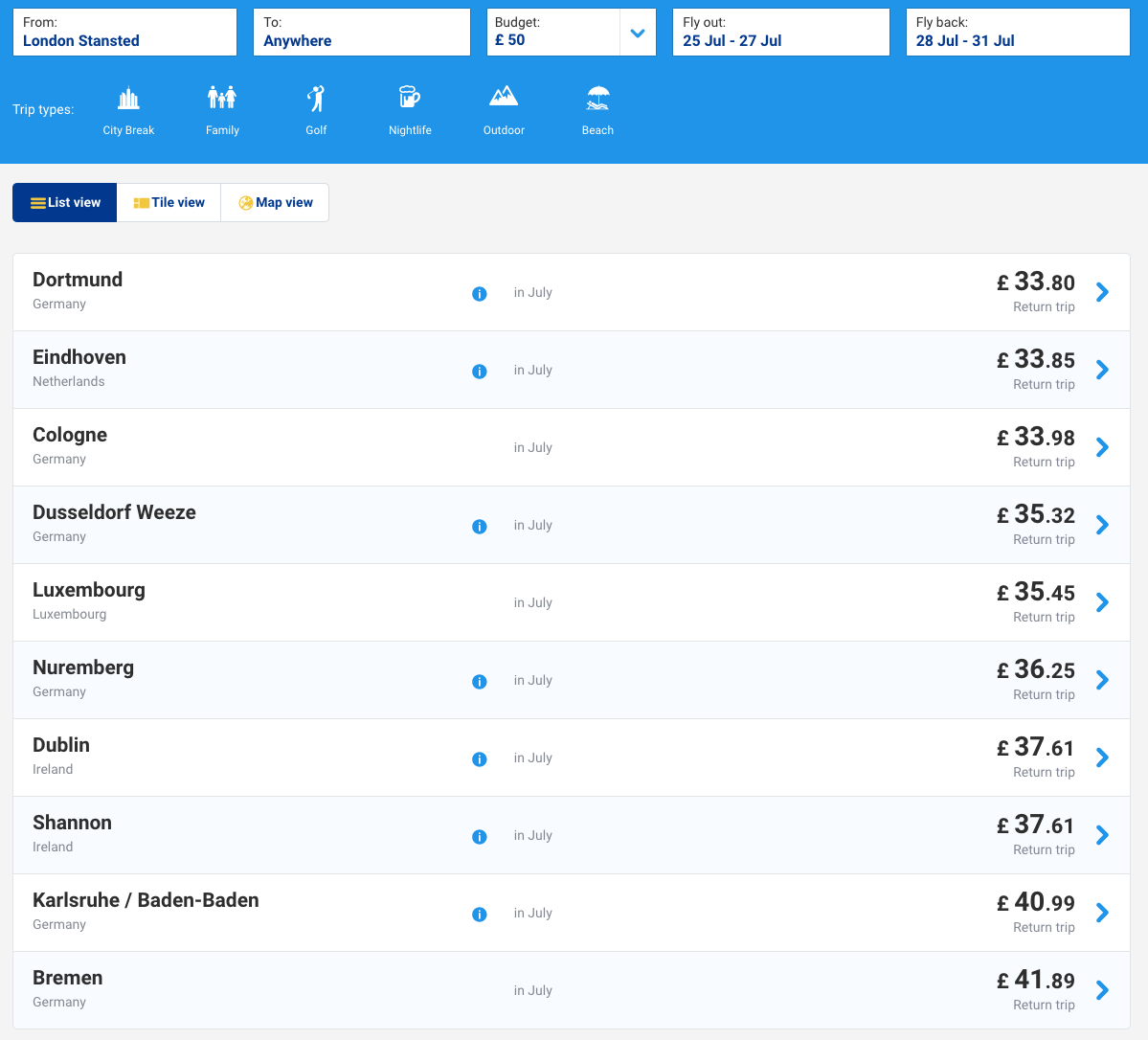 Skyscanner also allow you to search for ‘everywhere’ in a certain month but I’d like to see some more options from these guys in the future!
