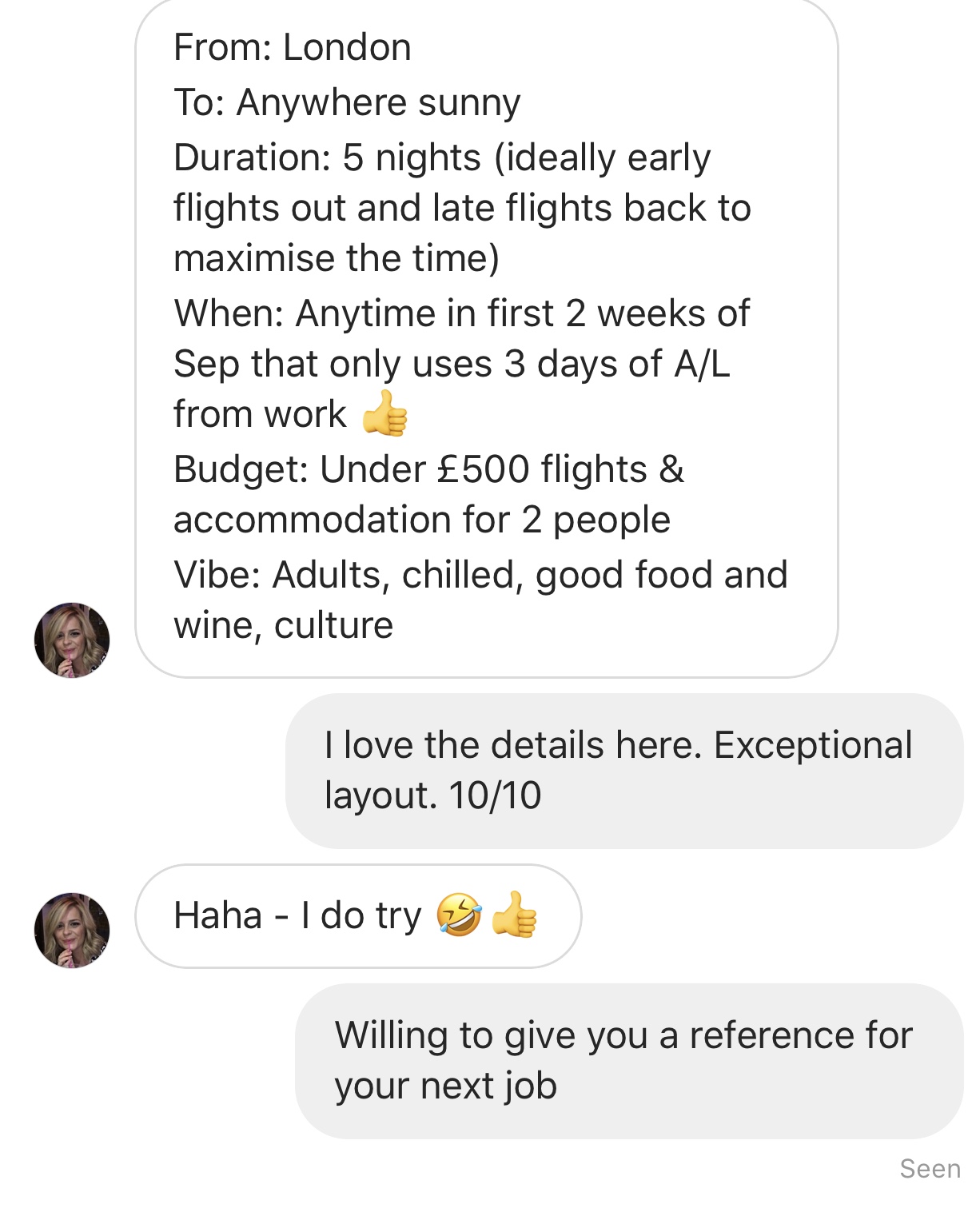 I also really like that some people tell you why they can no longer go – one fella lamented that it was intended as a romantic getaway but they’d unfortunately broken up… 🙈😬🤣