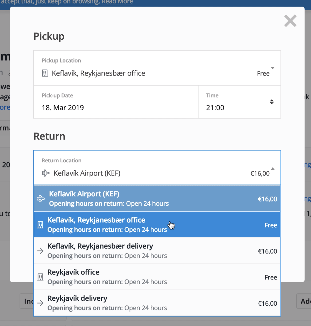 One tip – if you’re searching from the airport, make sure to change your pickup destination to their local office as this can often save you even more money.
